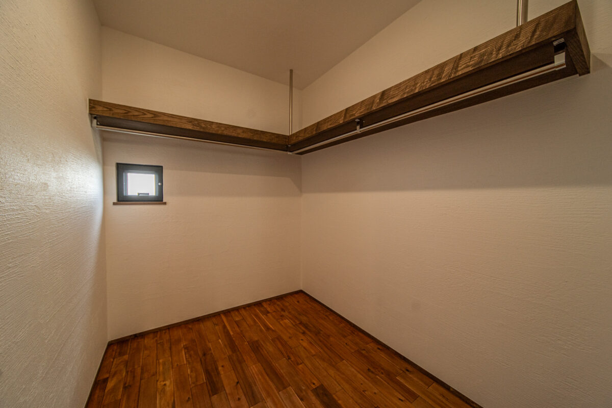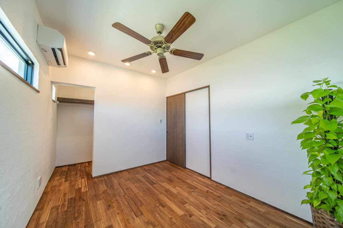 床面積31坪の平屋は、東西に細長い敷地を生かしてLDK、寝室、収納をバランスよくレイアウトした家。