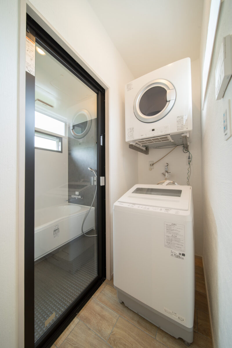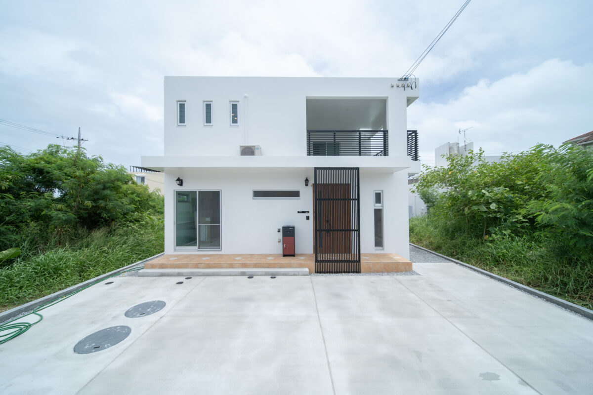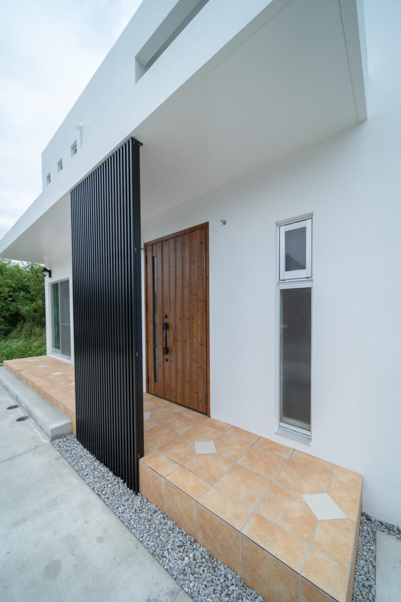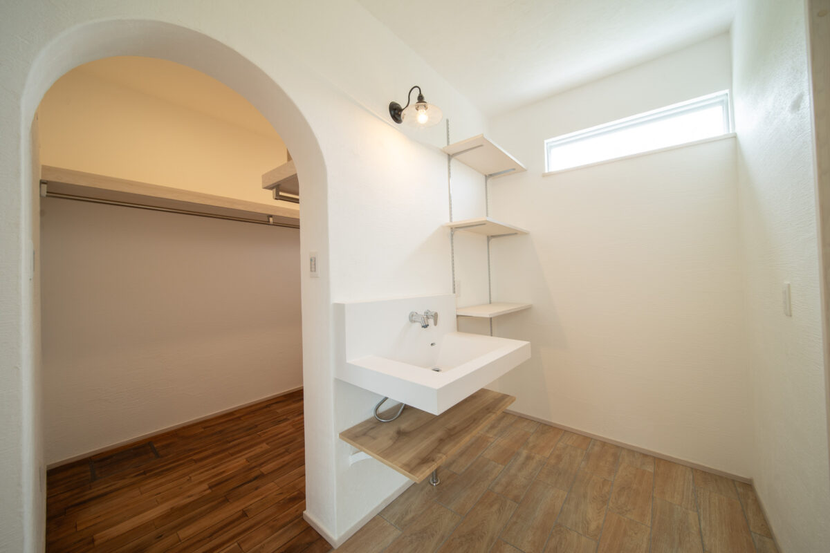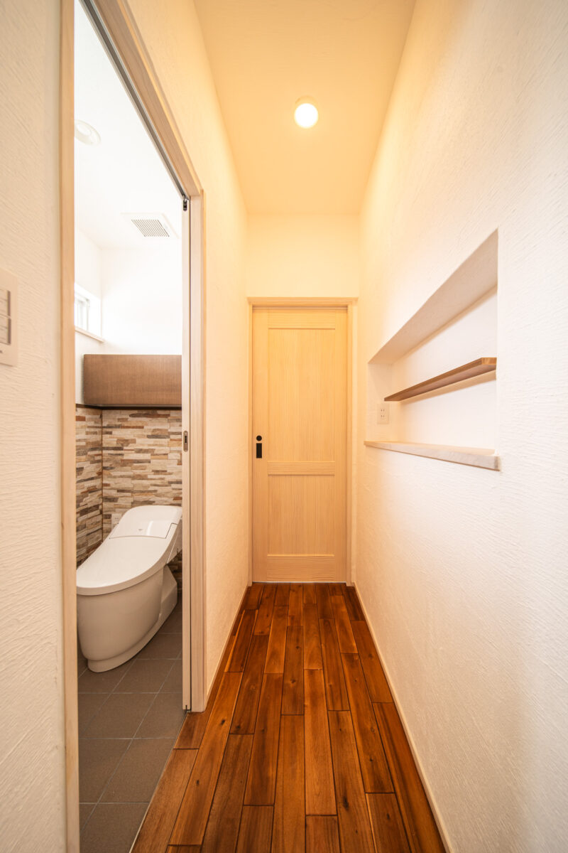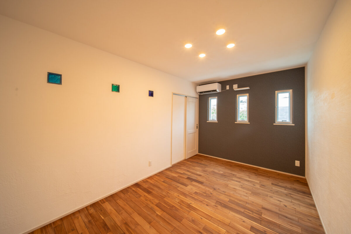 白の漆喰壁にカラーガラスブロックが映える室内やスッキリまとまるテレビ裏収納も必見です!
