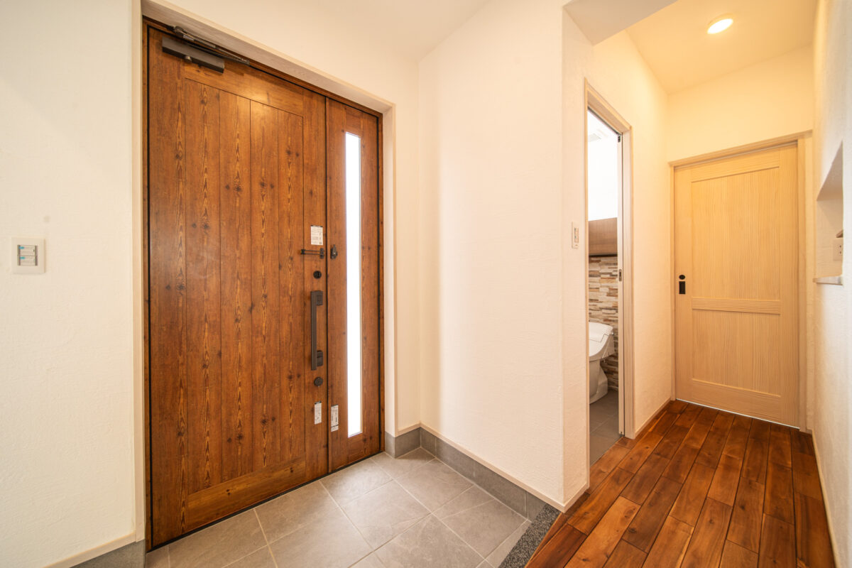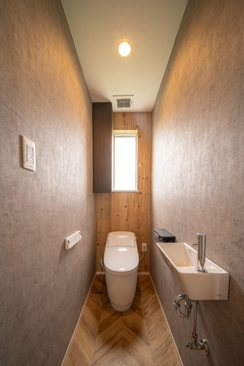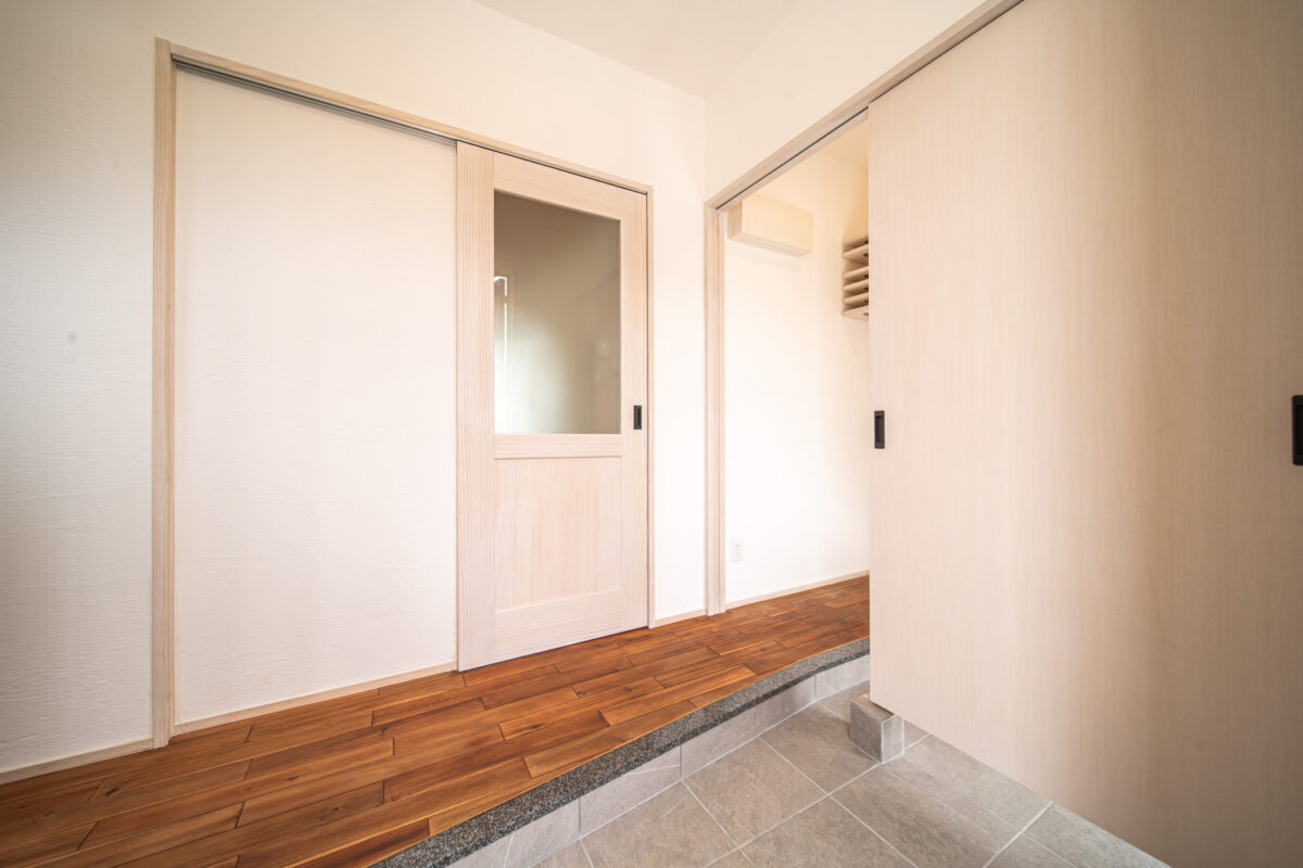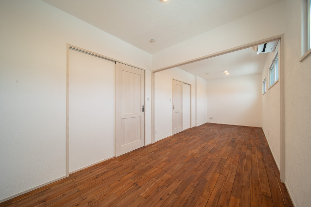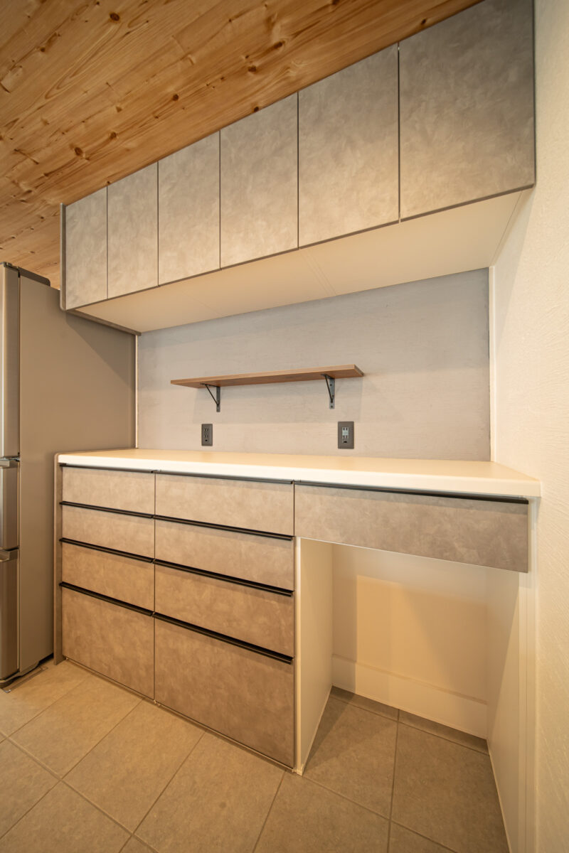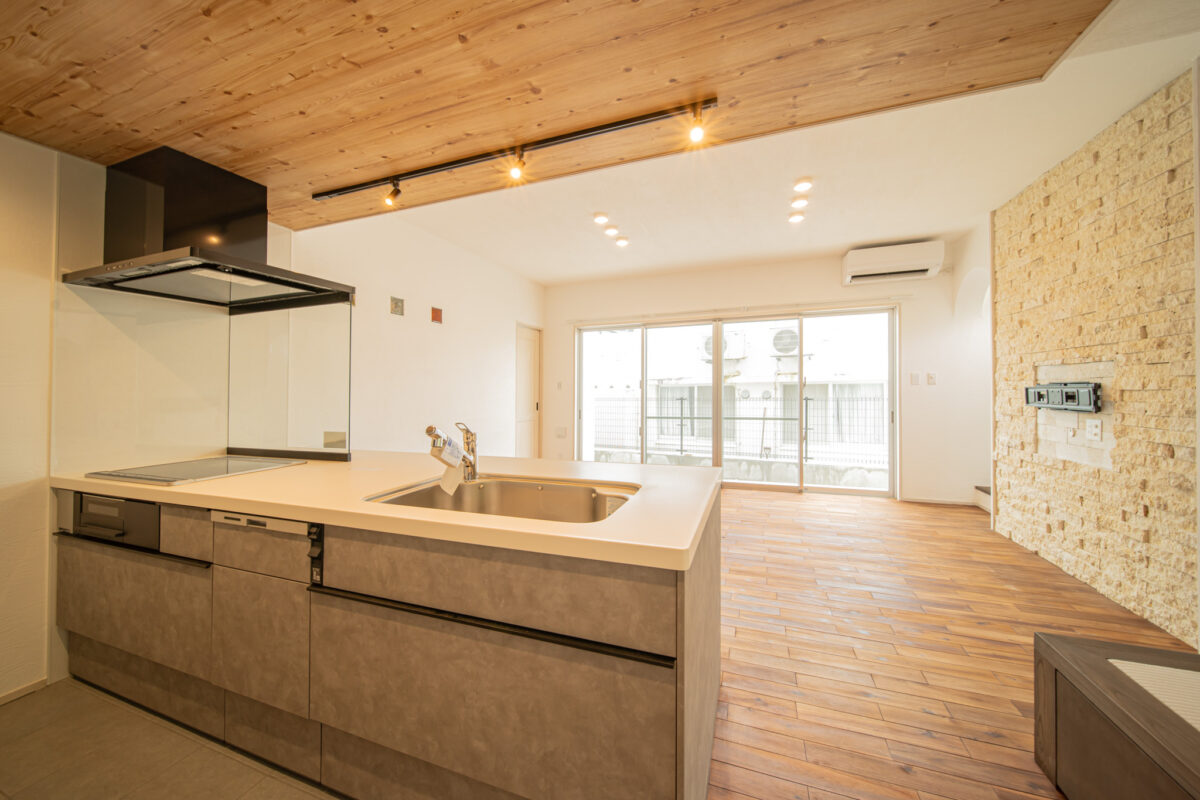 床面積40坪の2階建ては、お料理をしながらお子様の成長を見守れる、キッチン横に和室を計画した家。
