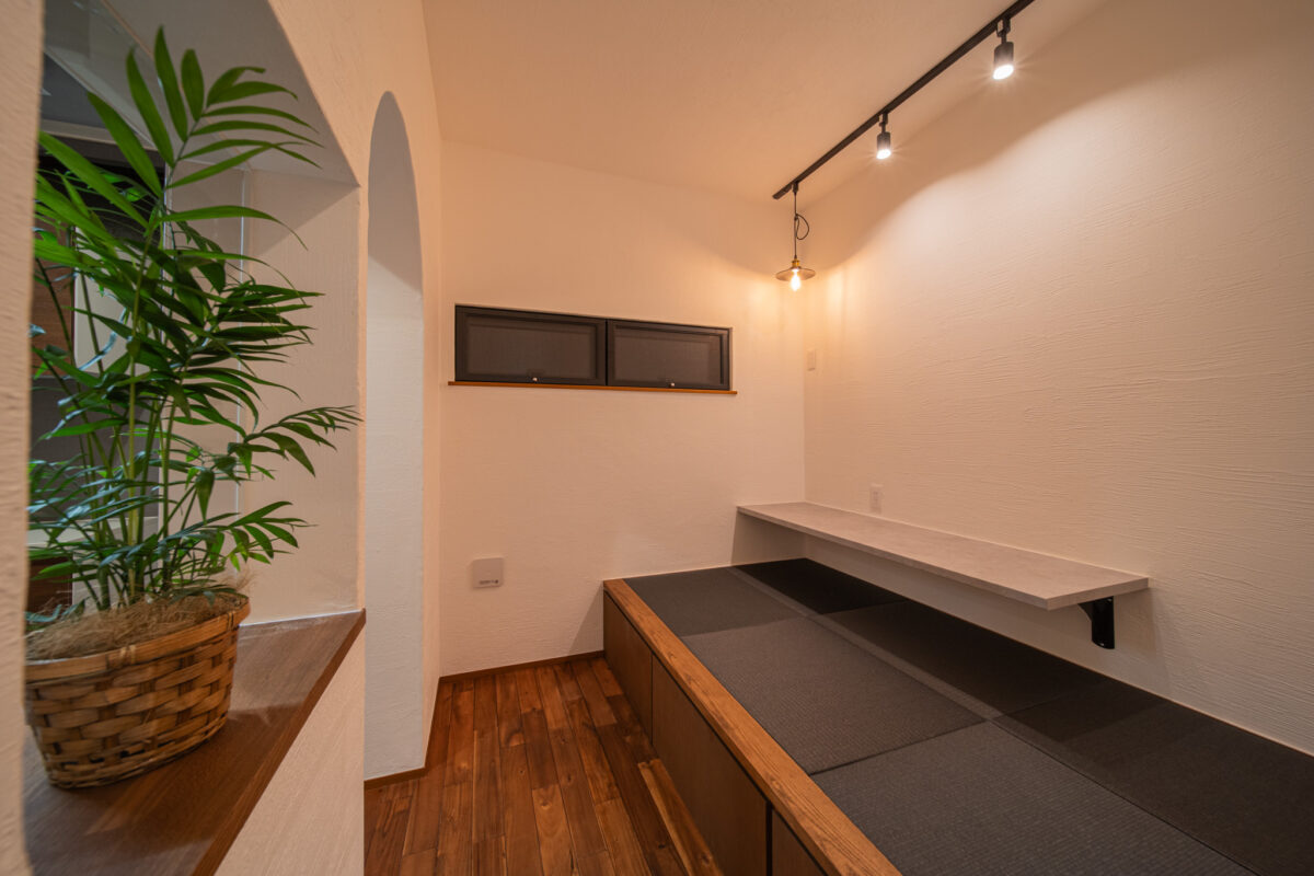 汚れを気にせず、趣味や作業に集中できる土間リビングが魅力の家。