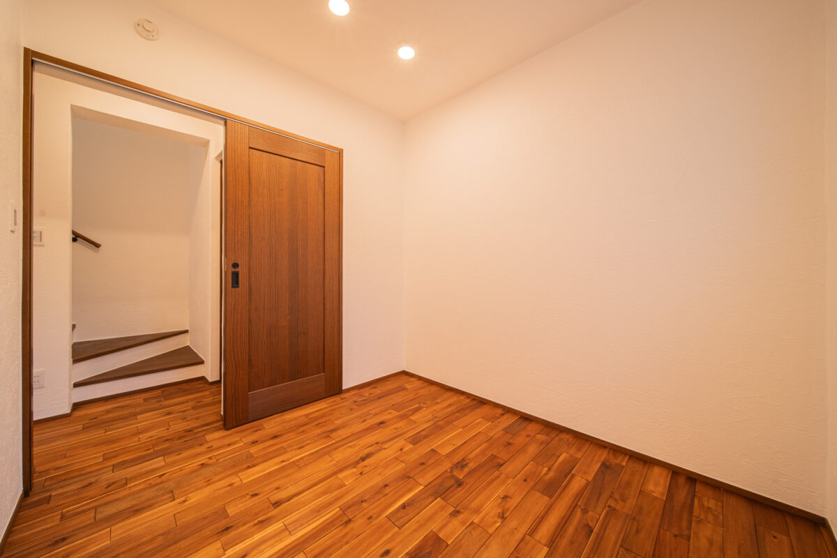 床面積40坪の2階建ては、細長い敷地を活かした、奥行のある開放的な2階リビングが魅力の家。